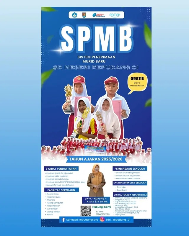Selamat datang di website resmi SD Negeri Kepudang 01 Binangun. Dengan penuh rasa syukur, kami menyampaikan bahwa website ini hadir sebagai sarana informasi dan komunikasi bagi seluruh warga sekolah serta masyarakat luas.